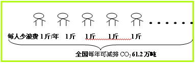 商店购物等日常生活行为中,简单包装就可满足需要,使用过度包装既浪费资源又污染环境。减少使用1千克过度包装纸,可节能约1.3千克标准煤,相应减排二氧化碳3.5千克。如果全国每年减少10%的过度包装纸用量,那么可节能约120万吨,减排二氧化碳312万吨。