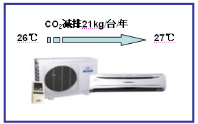 炎热的夏季,空调能带给人清凉的感觉。不过,空调是耗电量较大的电器,设定的温度越低,消耗能源越多。其实,通过改穿长袖为穿短袖、改穿西服为穿便装、改扎领带为扎松领,适当调高空调温度,并不影响舒适度,还可以节能减排。如果每台空调在国家提倡的26℃基础上调高1℃,每年可节电22度,相应减排二氧化碳21千克。如果对全国1.5亿台空调都采取这一措施,那么每年可节电约33亿度,减排二氧化碳317万吨。