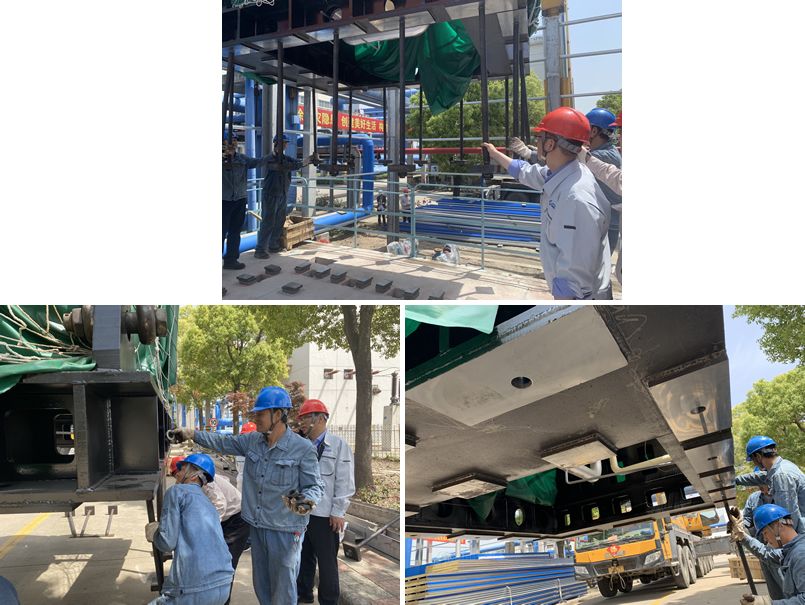 5月8日早上6点6#汽轮机到达公司厂内,项目部及机务检修人员根据装箱清单对汽轮机设备及其附件进行了清点及外观检查,确认无误后开始吊装准备工作。吊装过程中,公司副总经理季佩生、生技部副经理陈卓到现场进行指导监督,检修各专业协同配合,上午10:33汽轮机本体平稳起吊、缓缓向汽轮机平台移动,随着吊车落钩,汽轮机精准就位,标志着本次吊装作业圆满完成。