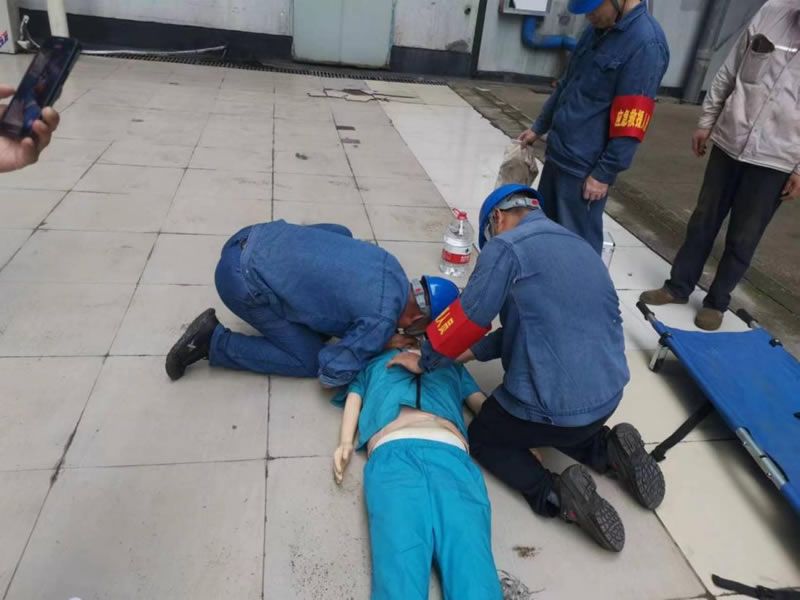 演练结束后,参演人员在集控会议室开总结会。李江对演练过程中的要领进行了再次强调:(1)本此演练目的是提高检修人员应对检修作业中突发性事故的处理能力,同时检验救援人员应急救援快速和掌握急救知识考核。(2)面对现场复杂情况,检修人员要有正确认识,不要盲目施救,造成多人或二次伤害。(3)现场急救人员对心肺复苏知识提问,如救援现场环境和保护安全要求,如何判断伤者是否有意识,胸外部按压部位和深度次数。和做人工呼吸的流程,在什么情况下停止施救。